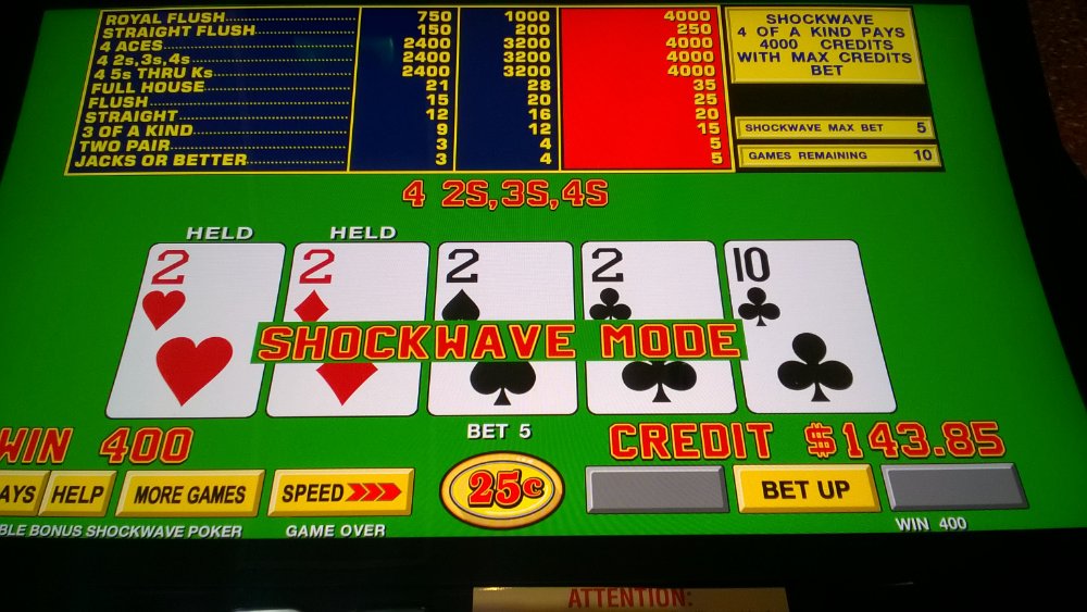 I had some fun on Shock Wave getting into the mode of 10 hands many times but no 4000 coin 4ok.