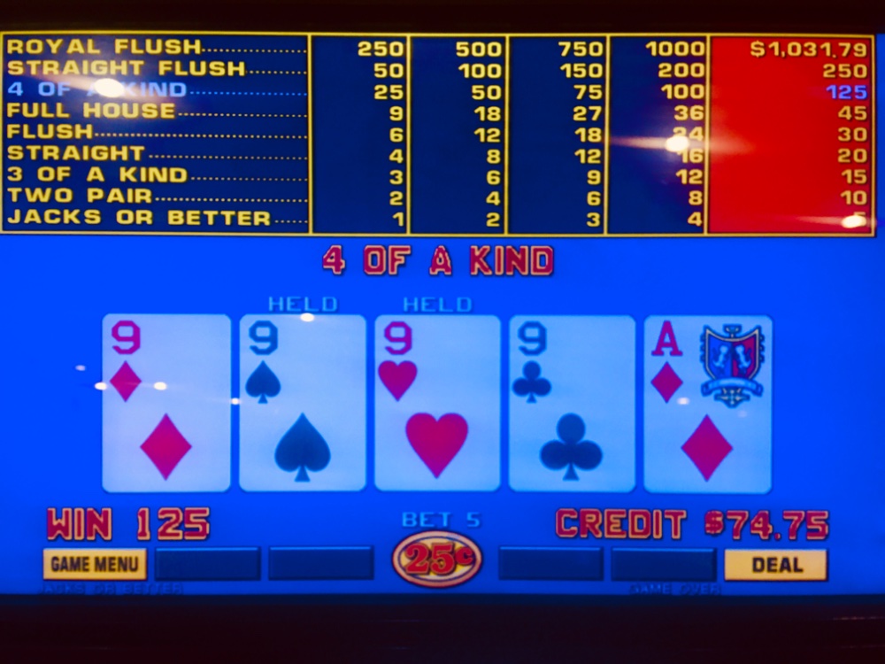 Terrific Thursday evening. I won my $25 Caesars FP on a nine point hit. I won $28 on $25 BP FP. I removed my card to set up a clean session. In under ten minutes, I hit a max premium quad. Net Day: +$152. 8 TCs.