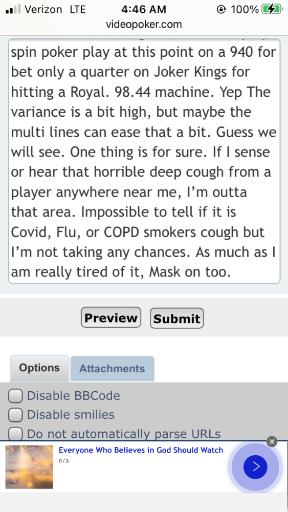 Tuesday evening at Bizarro with the Mrs was one of those hard to come by back to back winning sessions. Once again saved by a Royal and also the Joker. I started out down about 300 on a Deuces Wild game that was very cold. Switched to and stuck with Joker Kings after a dinner break with the Mrs, watching some mid term returns, and catching part of a movie. It was well after midnight until I settled into my do or-die play mode with the Martingale Clone. I finished up about 7 AM. The Mrs had an off night playing, but the giveaway bakeware set which she could use helped offset it a bit. I am planning a break for a few days to catch up on things at home. Stay safe and well all.