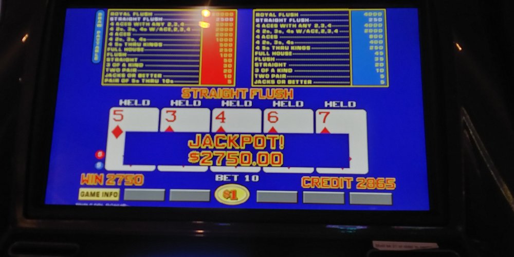 Ended up at my familiar bank of machines inside the Cove and began "feeding the animals". Along about 20 minutes later and halfway through the BR, I was blessed with my first dealt SF-