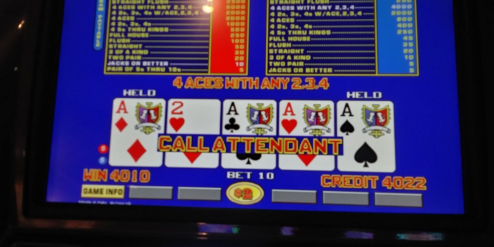 The streak ended at three last week. I racked up over 5000 TC but was only able to summon one small handpay. Also had a good run starting at 200 and taking that to 2100 but gave it all back. Just couldn't get that kicker hand.