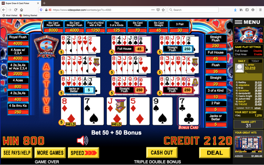 This one was mine in a contest. It was not nearly as profitable, but much stranger, and much more unlikely to fill 3 or more straight flushes, something like 75 million to 1.