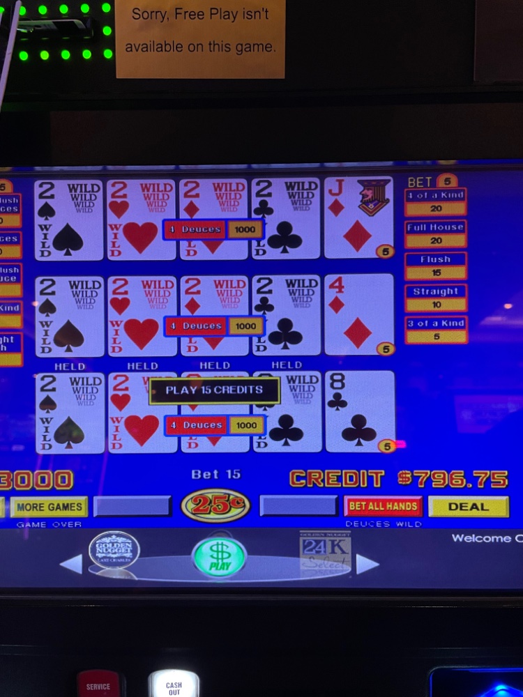 Then when I was about to head up and sitting by her she is dealt 4 Deuces.