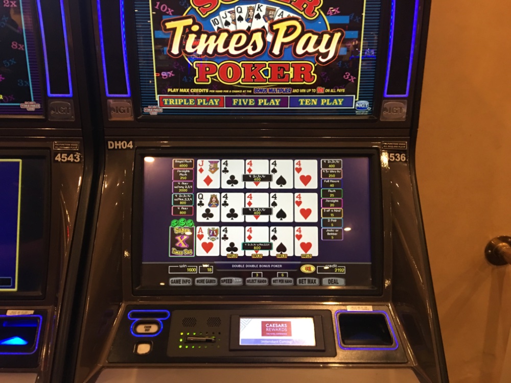 Caesars was in a generous mood this evening. Jackpots were hit on both sides of the far bank within a half hour of each other, on DWB and DDB.