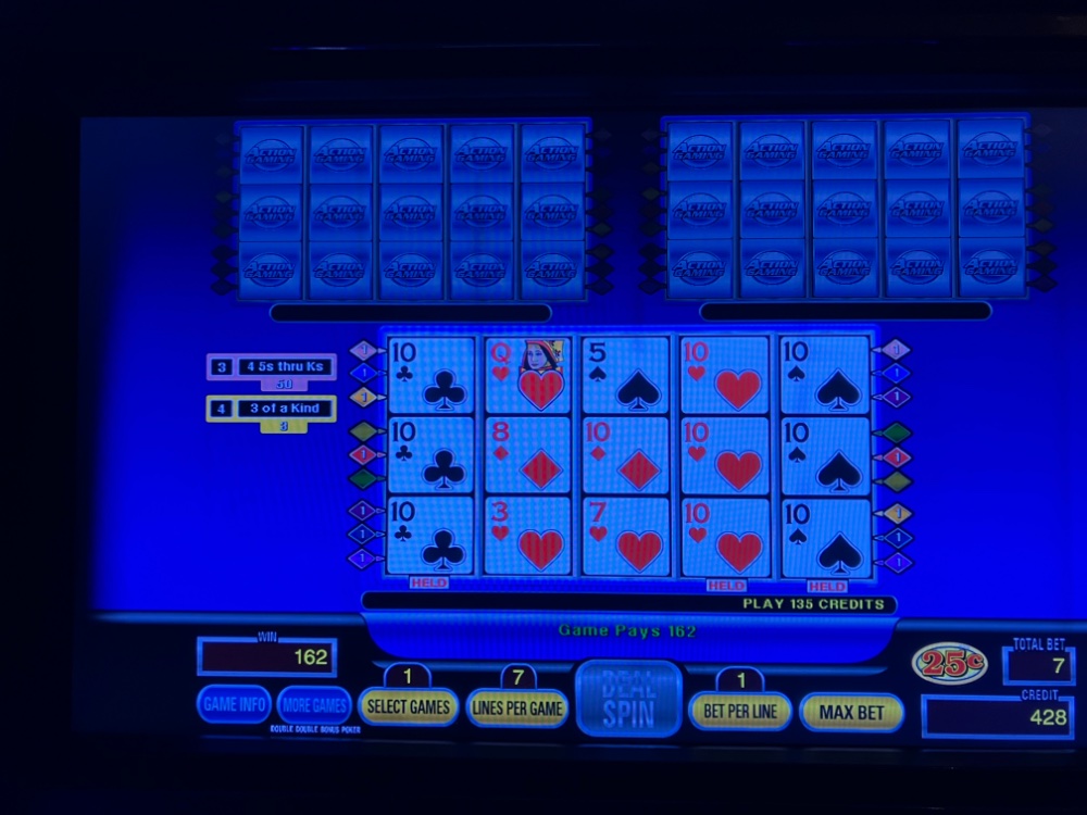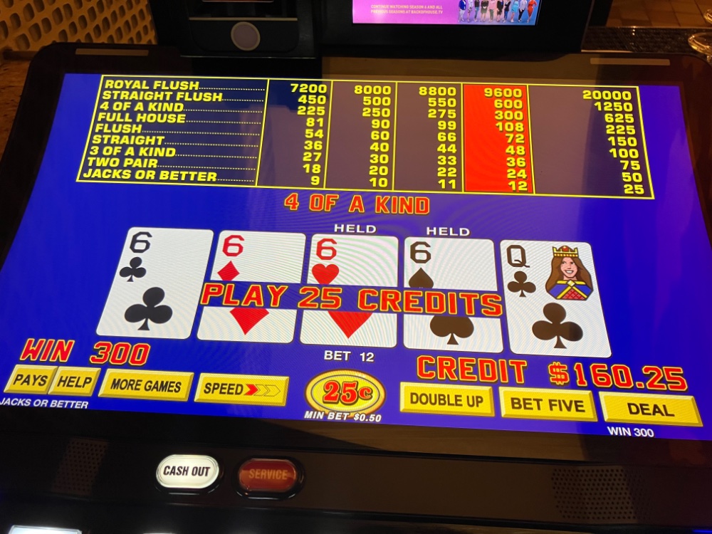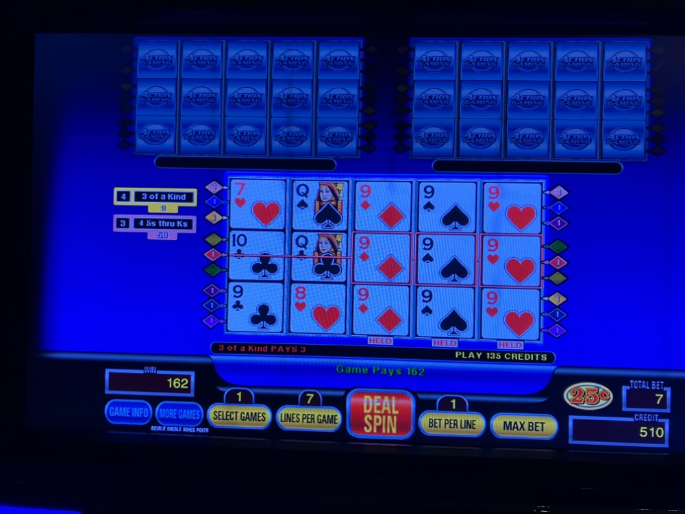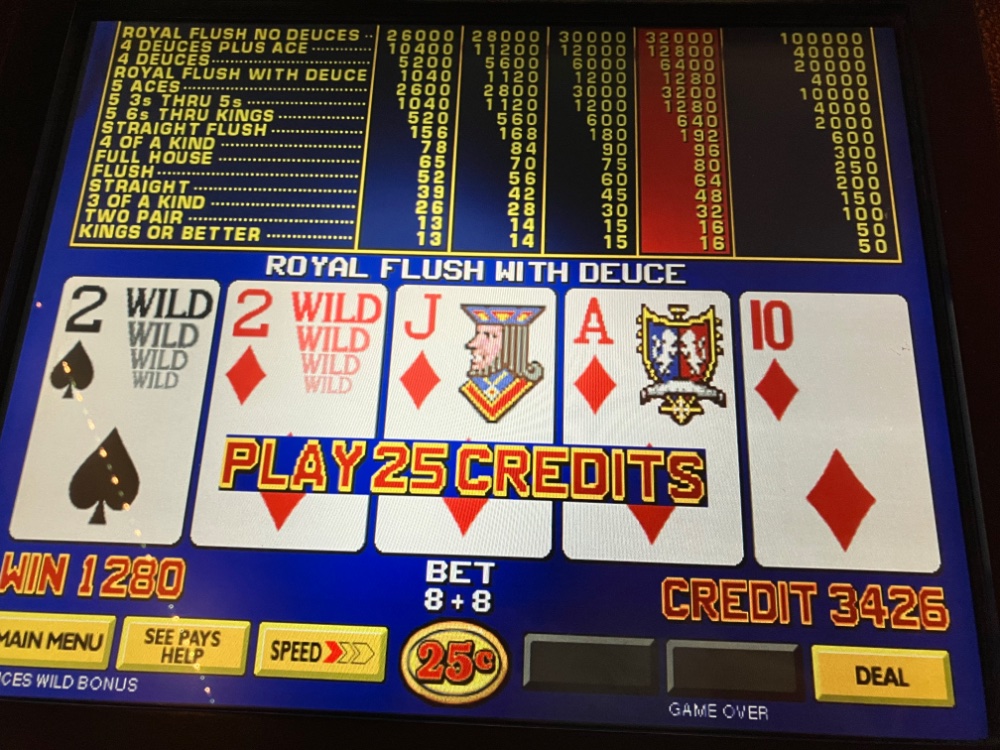 I got back from Bizarro late this afternoon. Ended up a few hundred so no complaints. I played about 12 hours total. 9 last night and 3 today. I tried 3 different games first on Triple Spin Poker. Nothing special. The dud streaks were too long on DDB. No Royals or even quad Deuces on deuces wild. No Aces on DDB. No 5 of a kinds on Joker kings. By far the best streak was on of all things DDS Deuces Wild. The biggest losses were on single line Joker Kings and Deuces Wild. The Clone was used for everything. A few pics attached. On Triple Spin. There were many more quads than what I am sending. Unfortunately, I gave a good chunk back from the DDB. I tried it on dollars after. No good. Made an extra hundred on the way out the door with JOB Ct.