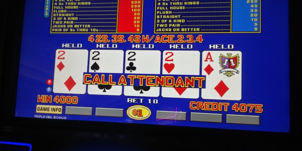 A great comeback in my book -1,000 on a very very very tough game. I am testing the waters as well on a tough game, but with good payouts in the upper hits. At just a smidge under 99 percent. Bonus Deuces Wild Triple play.