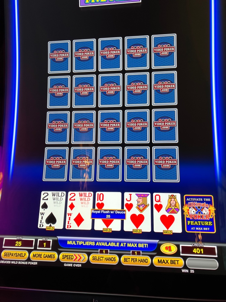 On the plus side, I have never lost on this recently installed machine with a 98.8 return if you don’t short coin. I only play it with the Clone waiting for a loss of between 10 and 20 times my current bet before advancing another line.