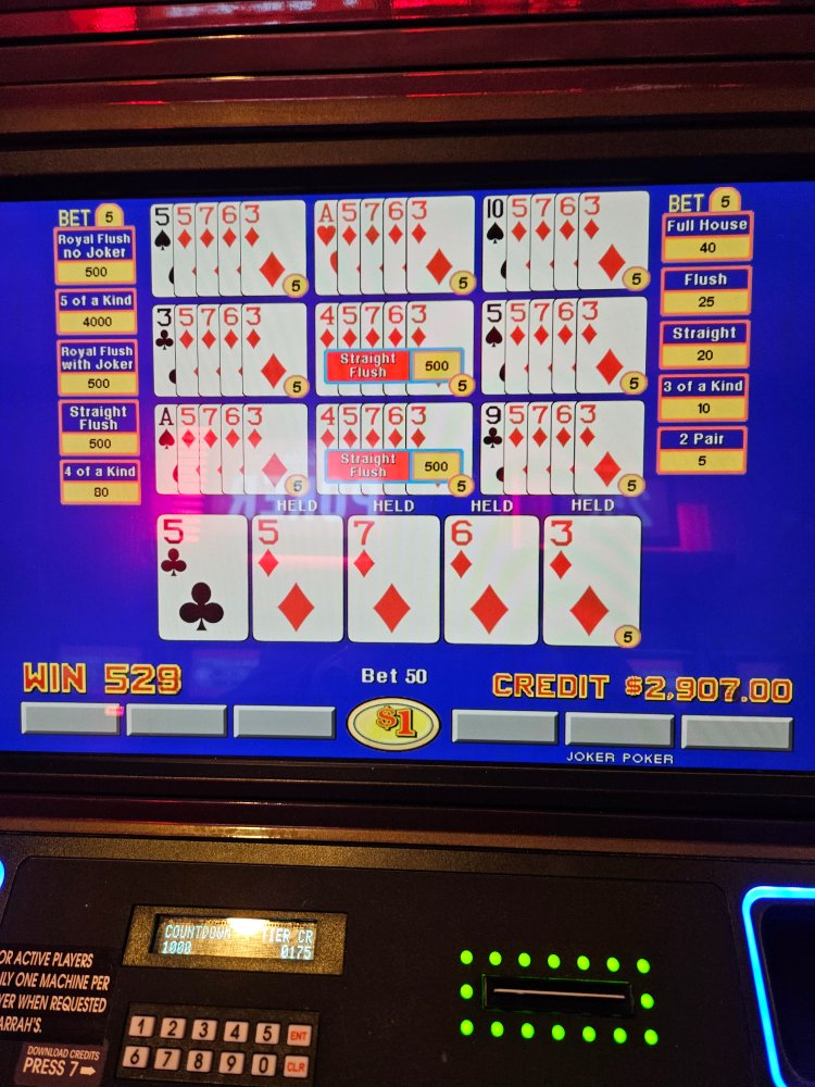 Kickin' ace on the AWAK's again Ted. Nice draws for the straight flushes and 9's also. Ten play at dollars is serious stuff- lucky for you the machines weren't rigged today.