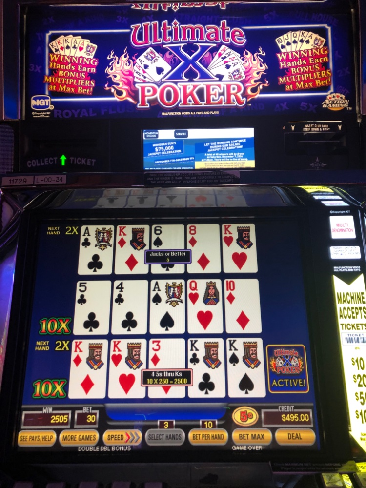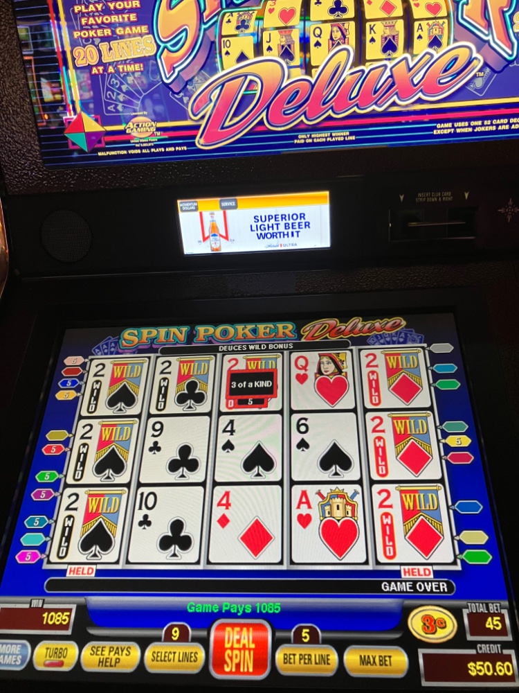 Thanks everyone. So far the forum Karma has come through. I’ll send some more pics later, but the Nes nailed her usual game. As I posted, I started small and had some nice quad Deuces hits. I decided to end our play with single line quarters JOB and broke the horrible Royalless streak. Thanks for the clovers and well wishes from us both. Dinner time then home.