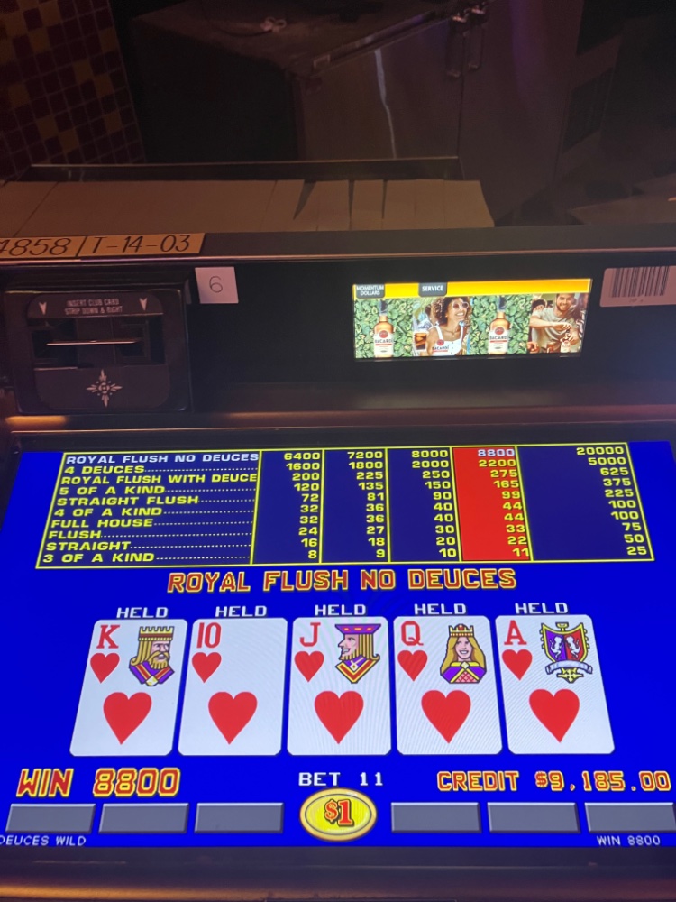 This was a discarded hand. The Royal came in on the redraw and was auto held. Best news……it all went home. Shelter visit tomorrow.