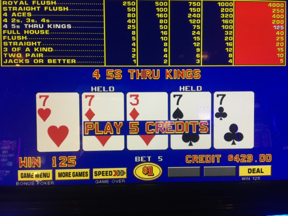 Scuffling Saturday. I won $39 on my $30 Resorts BP FP. It hit $63, but was returned plus. Fortunately, I hit a max quad and left. My resolve to play FP only has dissipated. Jitney to Harrah’s. Dopey passenger got on and asked if any AC driver had found his phone. What a bad omen. I hit a max quad Kings to stay afloat. Guy hit a DDB quad hand pay nearby, so I stayed to no avail. Of course I managed a min quad at next machine and split. Net Day: +$9. 141 TCs.