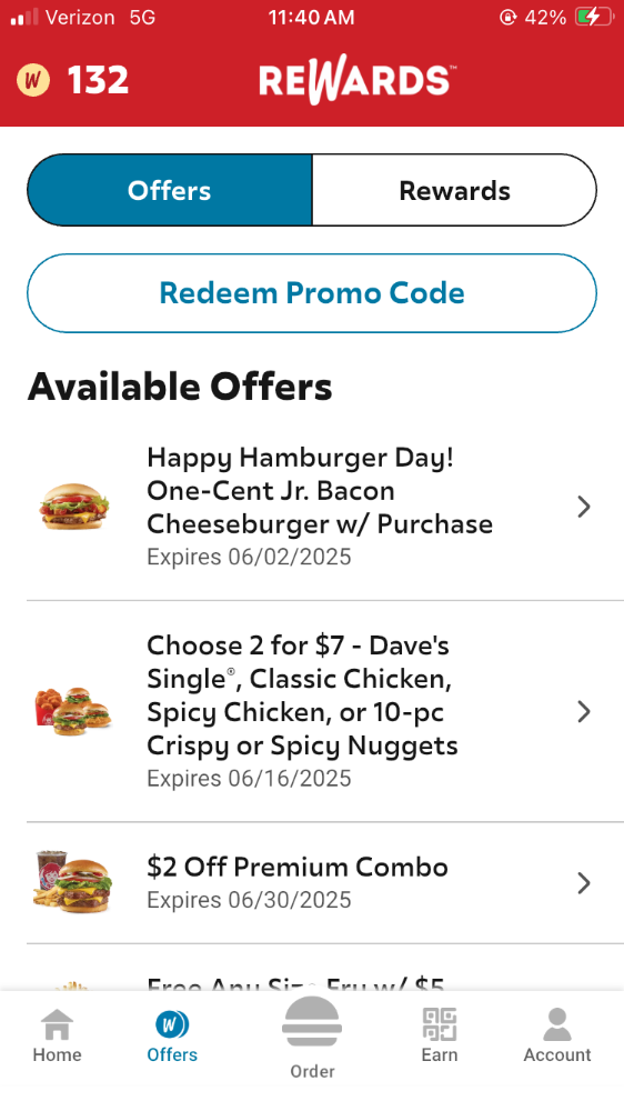 Good till 6/2. We opted last night for just the 1.49 jcb and the 1 cent jbcb. We both got the key tag Frostys too. The usual. Starving after the ride home in pouring rain from Bizarro. They just brought the survey wheel back as well. When I go to the Wendy’s on the way to Bizarro, the manager lets me pick anything I want from the wheel without spinning it. I’m somewhat of a celebrity. On major Holidays, I tip all of the employees who happen to be on duty when I get there.