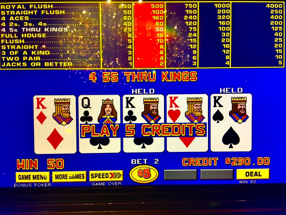 It is a bit torturous, but if you played 5 quarters at a time until you hit a quad on JOB or BP and if no hit, quit with a loss of 25 times your bet. That would limit your loss to 31.25 then enjoy the rest of the day doing things down there. You would probably hit a royal once in a while. At any rate.At any rate, that’s cheap entertainment by today’s standards