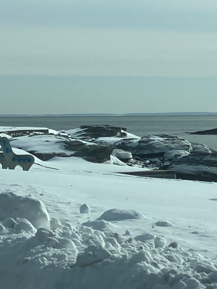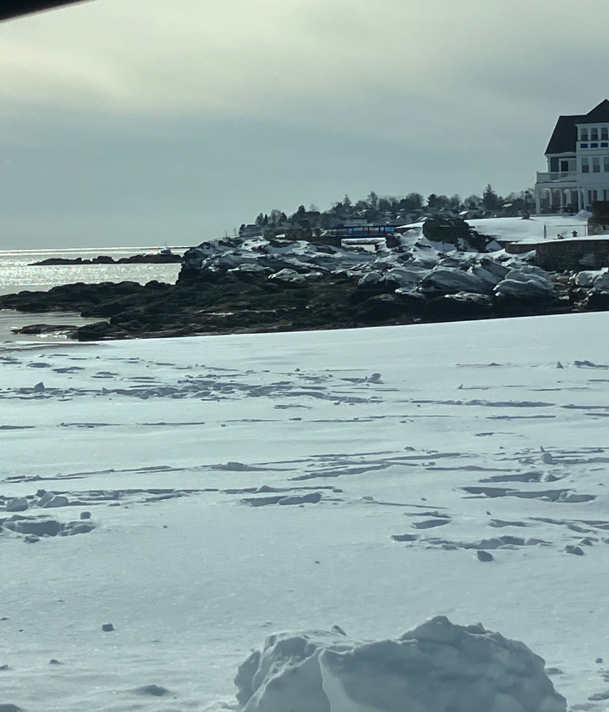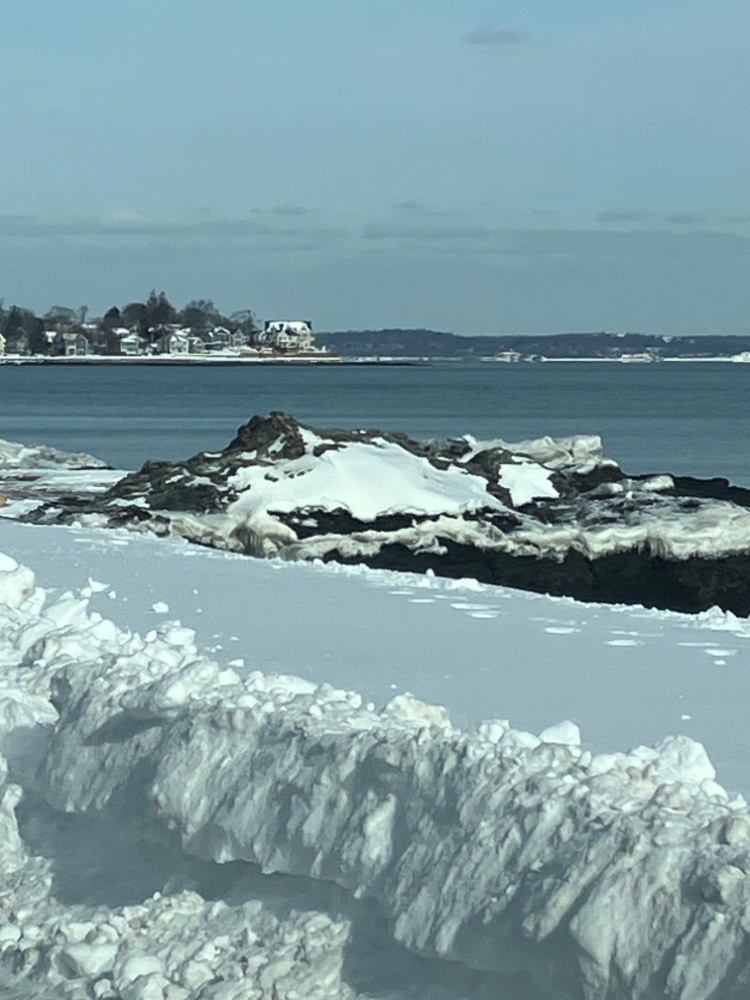 Just down the street today! The rock we call Potato Rock has an ice ring around it from the prior high tide.