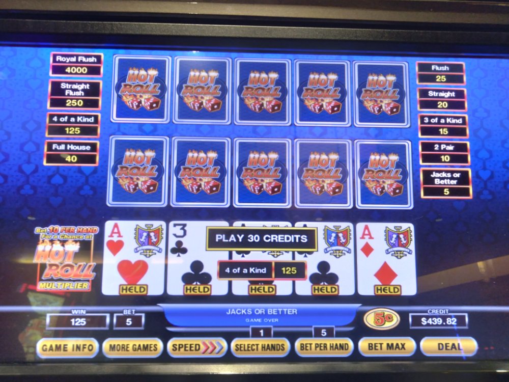 I just recently played video poker, never played before in my life threw $20 into it and about 4 hands in on max bet 25 cent machine i hit 4 Aces and a 2. I won a little over $500 i think and i left happy.