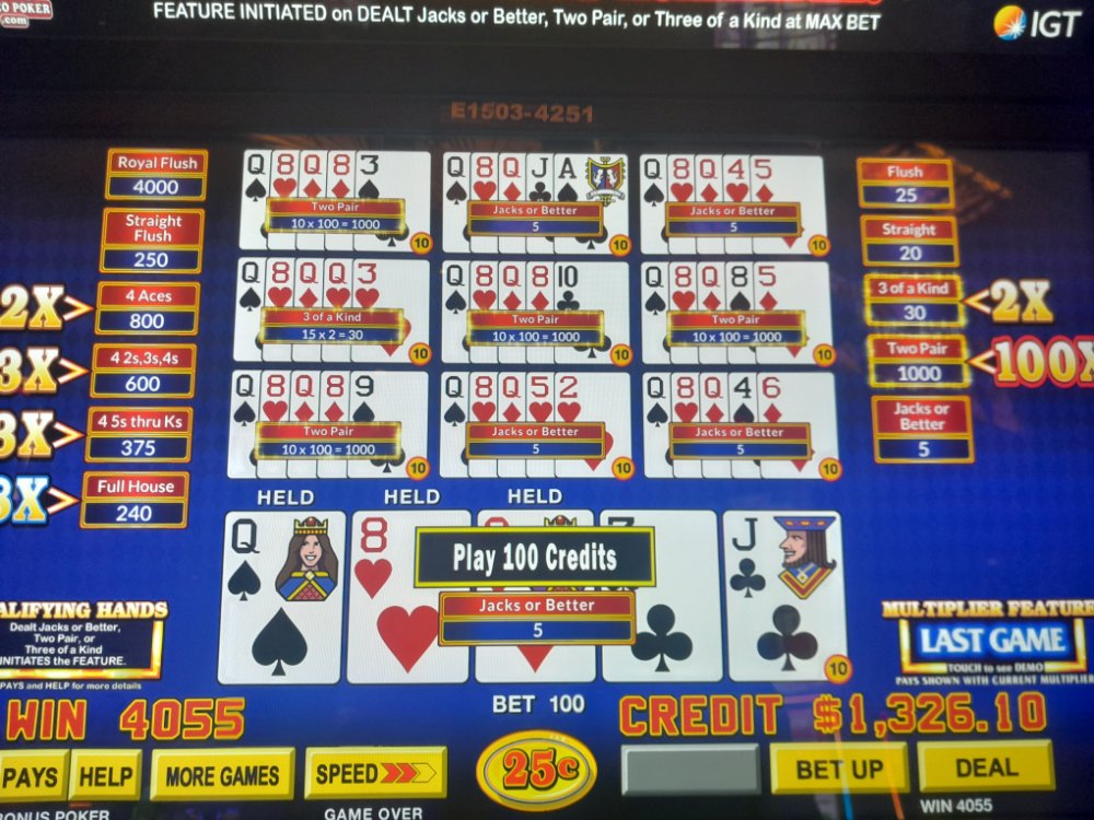 Nice. Its funny to see winning 1,000 credits for 2 pair, I'll try this game in a B&M casino sometime in the future.