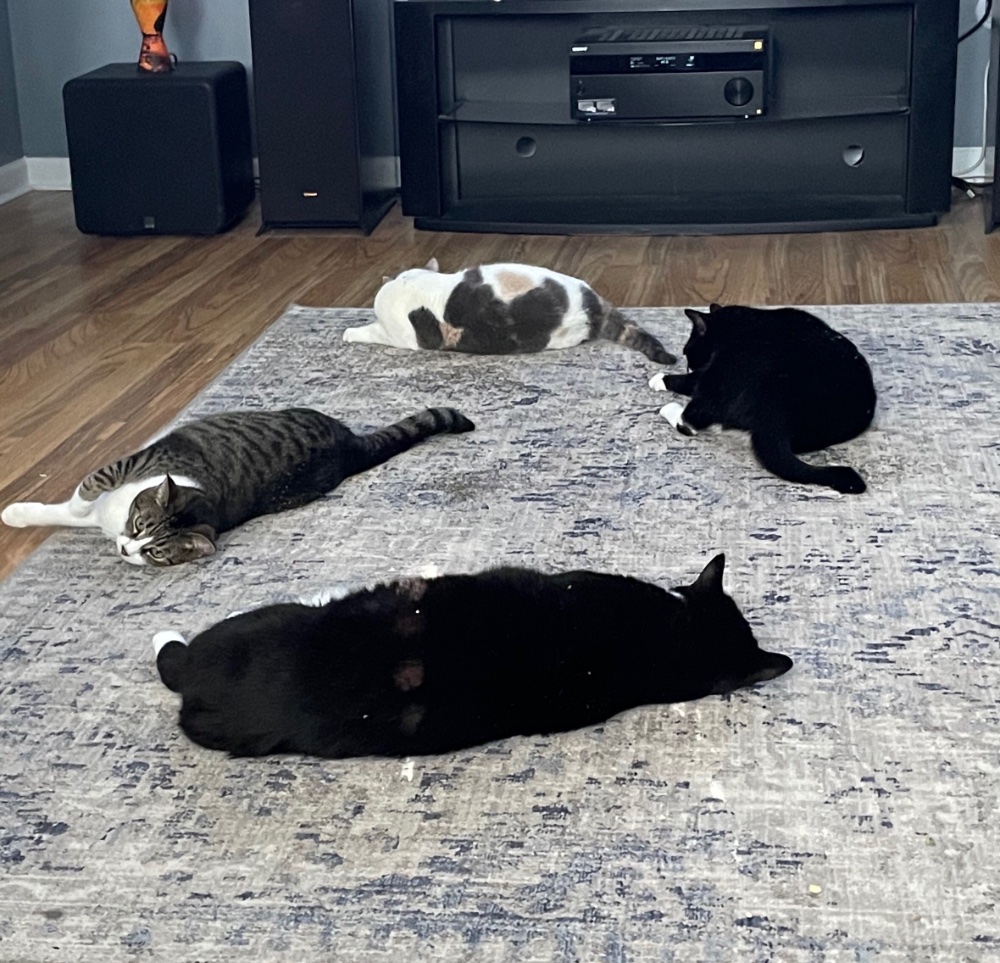 My cats after soon catnip and listening to Pink Floyd.-