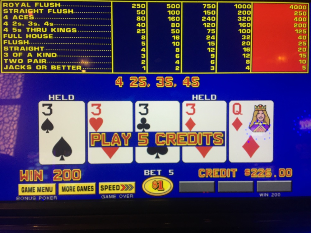 There is also a better (and rarer?) version that pays 35 for one for any quad, that has a game return of 99.66%.olds442jetaway wrote: ↑Sat May 27, 2023 8:16 amMohegan Sun removed it about 10 years ago. I used to play it. Now they have the inferior one that pays 30 for one for any quad.