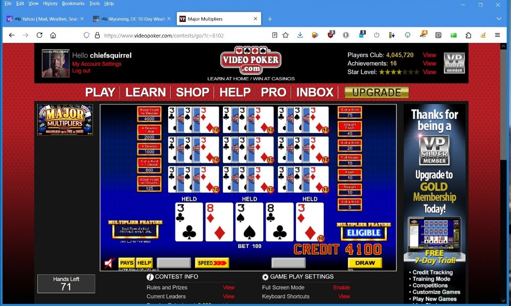 Even stranger, while playing deuces wild yesterday, I ended up with a natural quad (eights, I think), and a deuce, and since there was a 30 full house multiplier, it somehow counted as a full house!New2vp wrote: ↑Fri Feb 07, 2025 12:43 pmIf the full house payout ends up being higher than the four of a kind payout (due to a high full house multiplier and a lower quad multiplier), and you draw another deuce after discarding the KQ, say yielding something like 33226, you will get paid the higher full house amount, even though most deuces wild games would score the final hand as a four of a kind instead of a full house.