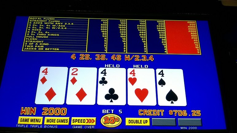 Steve, this pay table I am playing is 98.61% pay back. A variance of 139.5 vs JOB at 19.5. Your going to lose a lot of coins in this game. Bankroll is key to staying with this game for hours at a time.