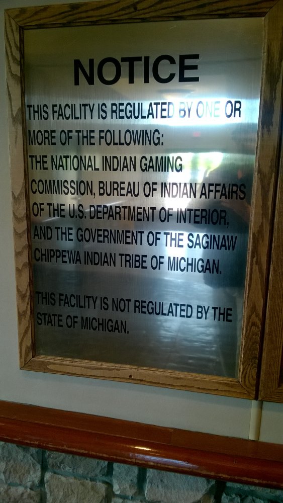The sign you posted blows up one-half of his post, the State of Michigan does NOT regulate our casino!
