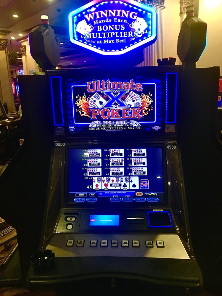 DDB delight for an undisclosed player. At ten bucks a pop, he held three Aces, hit two UX hands and won just enough for Uncle Sam to take a cut. Attendant found him playing the carousel’s next machine. Okay.