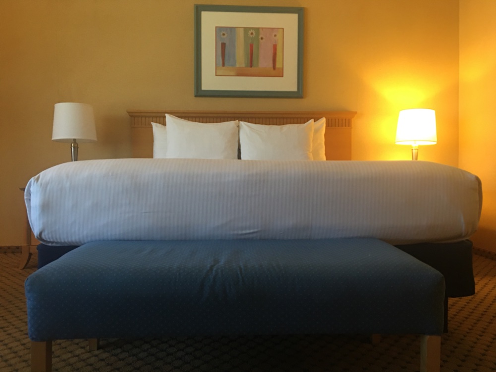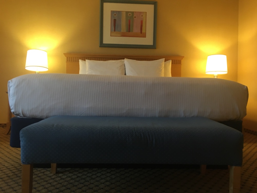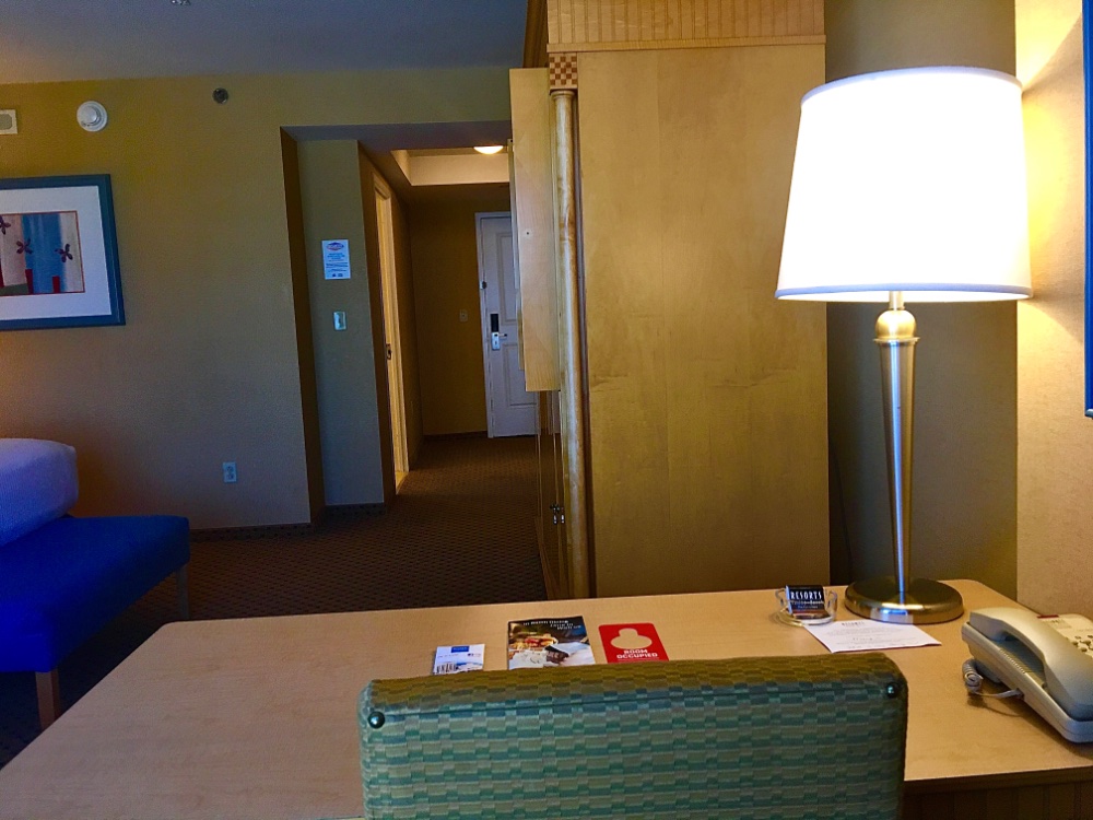 Same floor and side, by on opposite end. It was another comfortable stay. Housekeeping provided nine more bottles. Two are always in bath by ice tray. Bananas, milk and salad filled out my fridge. I was bananas for playing the next morning and should have milked my room time instead of watering down my BR.