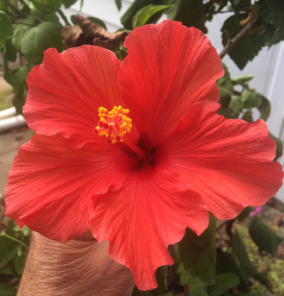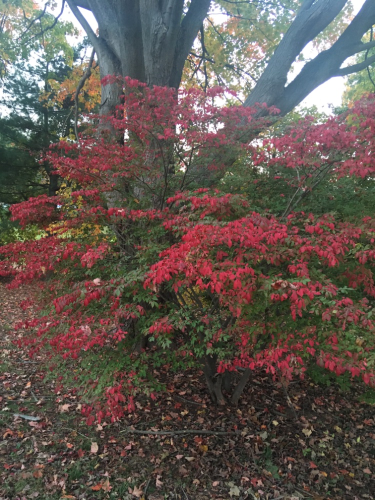 Cork bush starting to turn for the fall. One little hold out flower. The rest are pretty much gone.