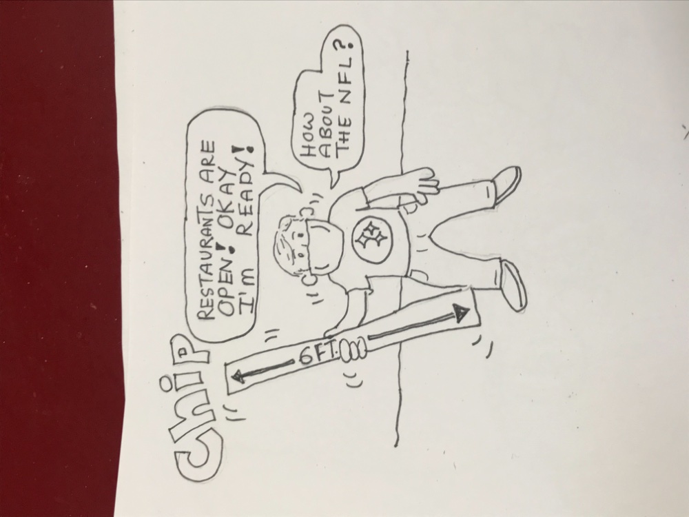 Thanks. For some reason, stiff neck time again. Lots of people I know liked the latest one. My friend who is a high school Art teacher, shows his class my cartoons not for the drawing obviously, but to get his class thinking, he sent this one back to me. Very good here it is. As you can see, his name is Chip
