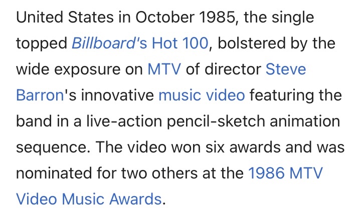 A-Ha was a Norwegian group and originally the song had limited success until it hit the US after it was re-recorded in 1985 from its original version in 1984. If you haven’t seen the whole video it is on YouTube and it is really good just type in, take on me YouTube A ha and it will come right up