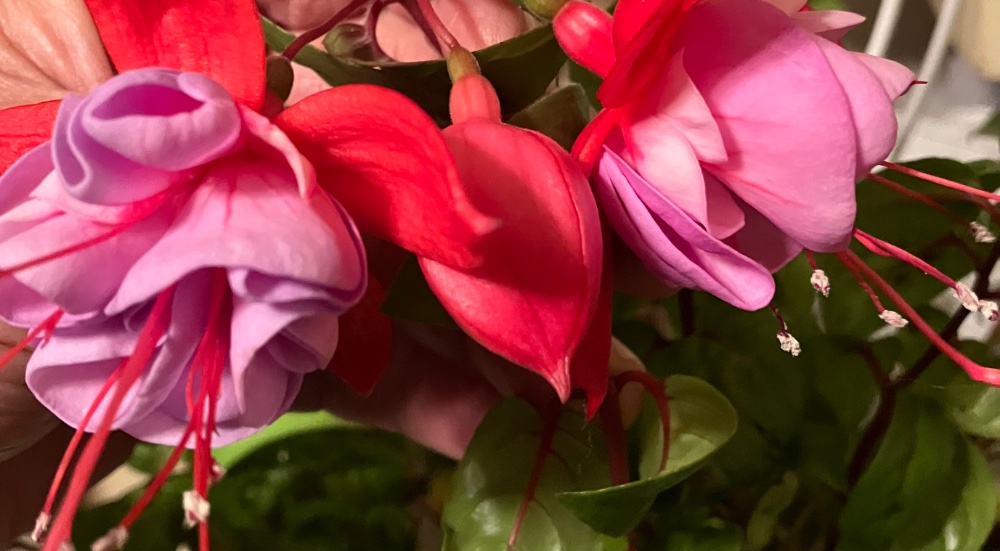 Last of the beautiful Fuchsia blooms we are bringing it in for the night as temperatures are expected to go down into the 20s.
