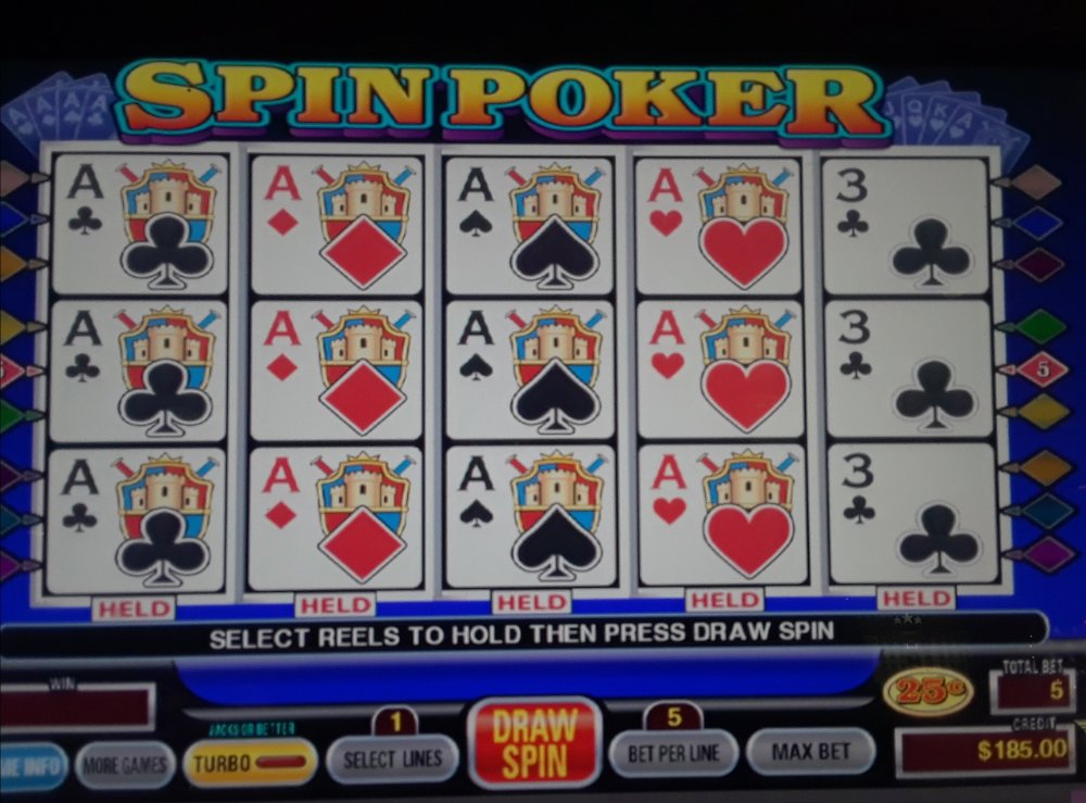 I just recently played video poker, never played before in my life threw $20 into it and about 4 hands in on max bet 25 cent machine i hit 4 Aces and a 2. I won a little over $500 i think and i left happy.