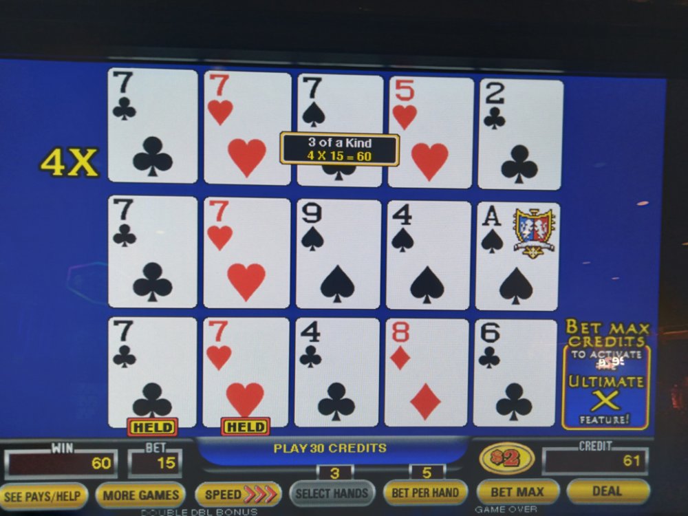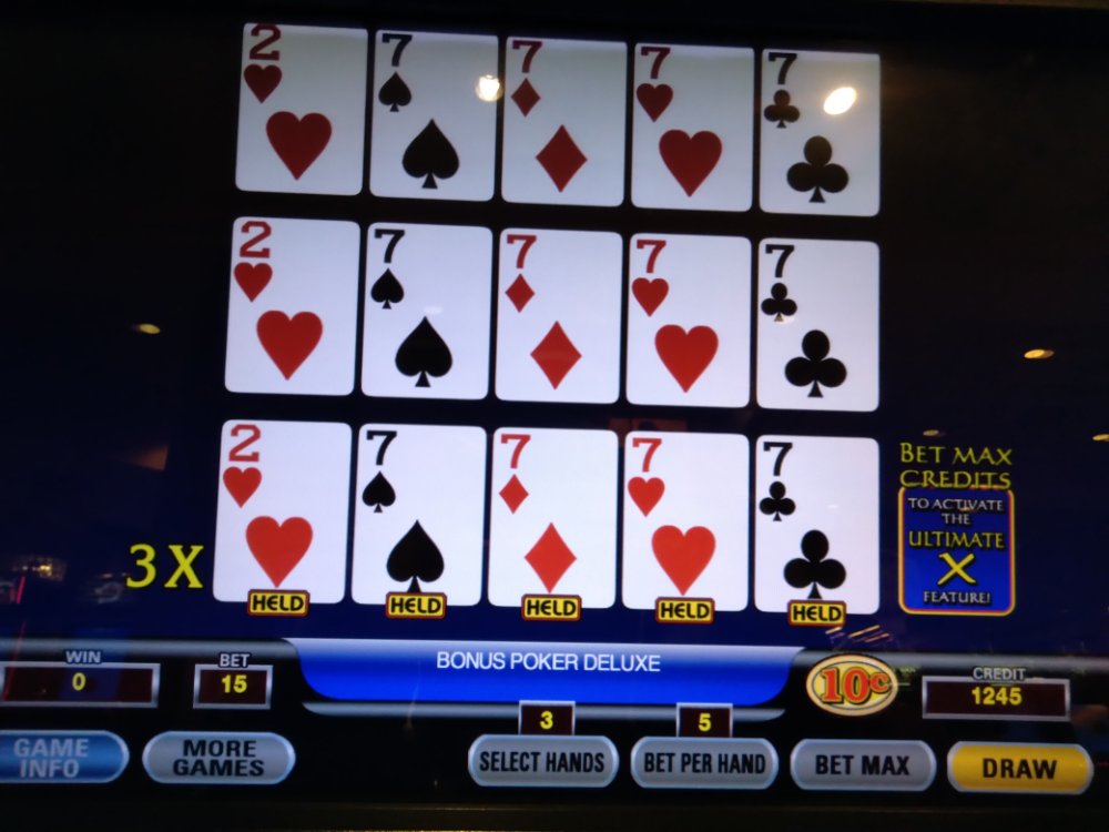 So I come in today talking to a friend on the phone. Second machine I run through has three 11x's on triple play, quarter Bonus Deluxe. I get dealt a pair of 5's and make one 3oak and a two pair for a nice $50 win. 20 minutes later, on dime three play they tease me with this nonsense! Where was this earlier?