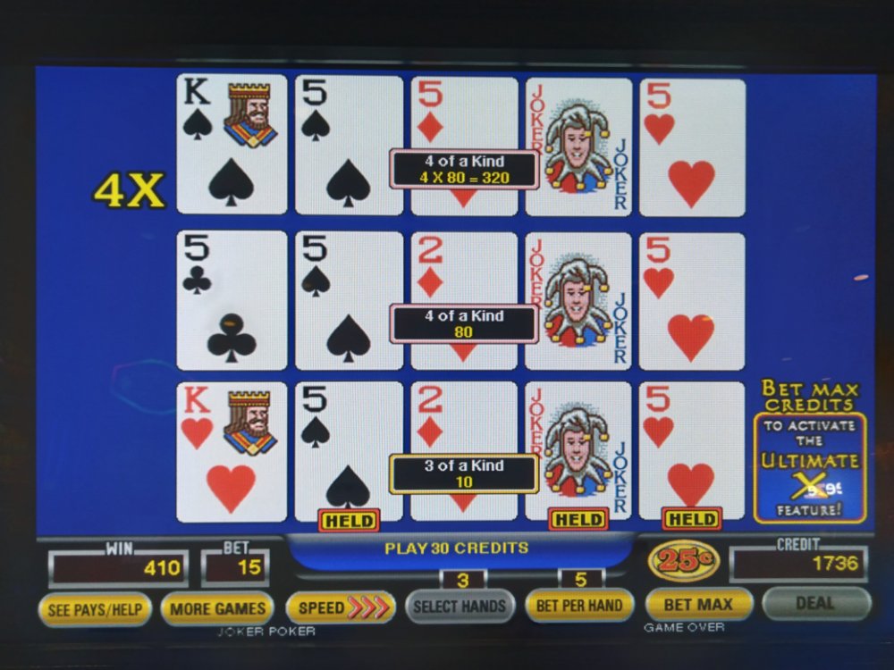 I don't get many plays on joker poker, but this one came through. And I almost gaffed it by holding Joker and an Ace!