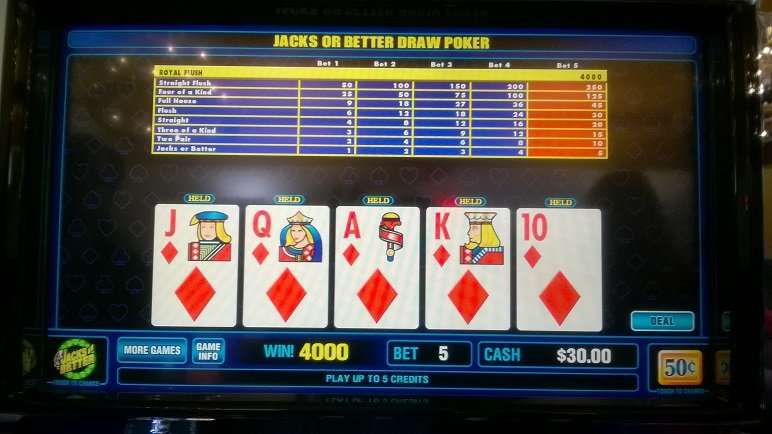 Was down $1200 for the month going into a short session before work Thursday. Collected my gas cards and after 2 hours of play and down near $400, a dealt Royal! From red to black for the month in one press of the button!