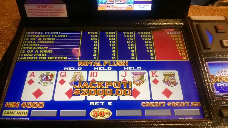 My wife and I got 2 tickets to Fluffy (Gabriel Iglesias) Sunday night from my Casino Host. We hit the casino about 4pm the show was at 7p. Playing for an hour held 3 to the royal and hit royal number 11 on the year! From drought to rout!