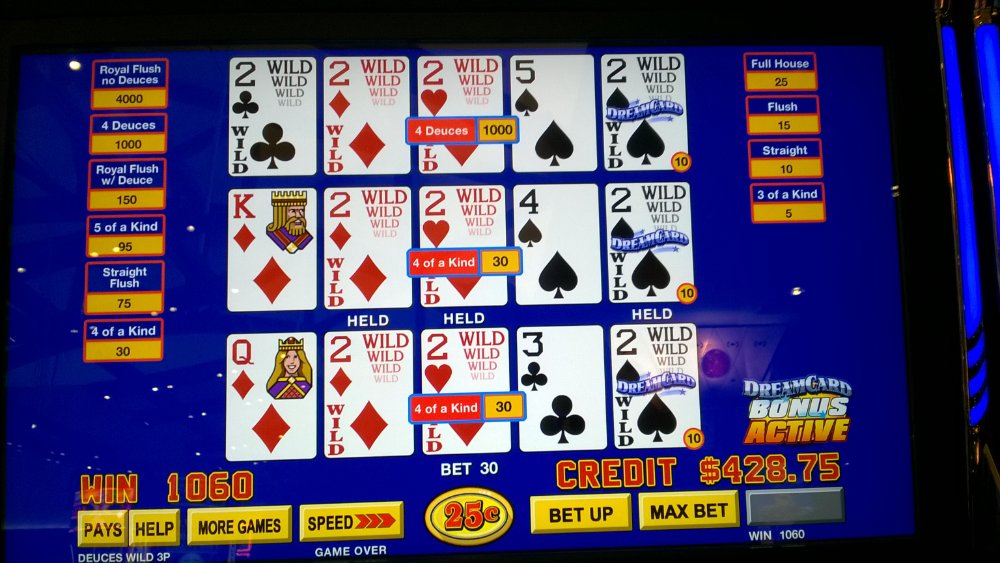 Wife hit a Major pot in the Bouns on a Buffalo machine. I got a four to the royal draw to fill in. Then on the way out I dropped 200 into DC and hit four deuces and cash out 400.