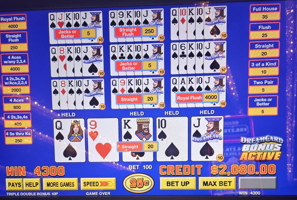 Tuesday, spent the entire day at the work event. Afterward, I decided to go to Caesars. Ubered over. Played a bar machine and dumped a grand. Walked around and found an All Star II machine and sat down. Played some 10 play TDB and dumped $500.00. Switched to Dream Card and: