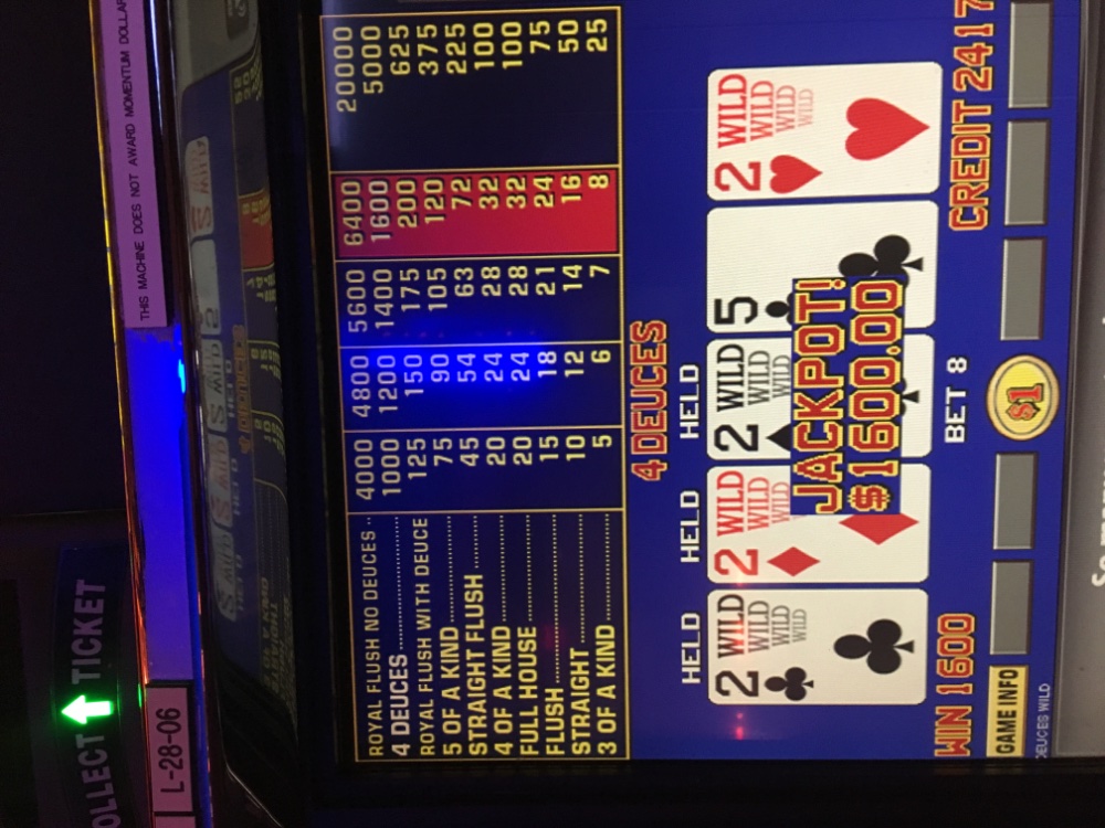 Got off task last night. Started playing Dds deuces wild and it was cold. Before I knew it my 500 bankroll was down to 100 bucks. Thats what happens when you say to yourself hmmm, I haven’t been dealt deuces in quite awhile, let me play dds because it pays so much more for the quad deuces. Anyway, I crawled back a bit this morning on dollar bonus deuces by hitting them for 200 bucks. Still went home a 300 buck loser.