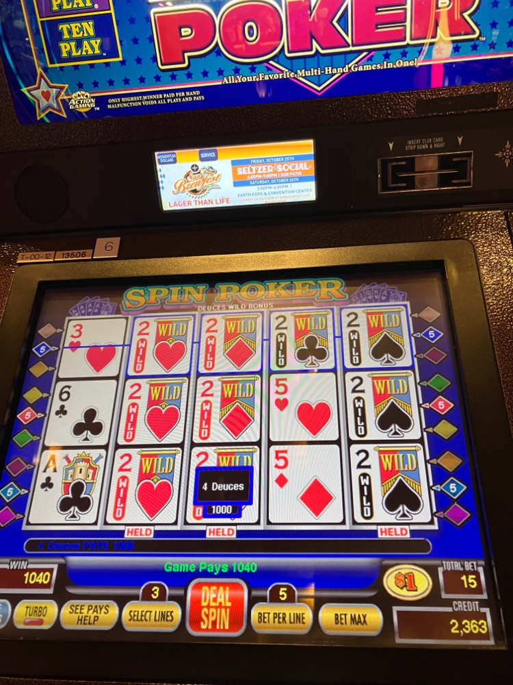 Thanks!! Long way to go yet, but I’ll take it! I was waiting for a loss of 20 times my bet before increasing. Lucky my 700 buck bankroll held on long enough till the quad Deuces came my way. I hit 5Aces twice too, just didn’t shoot a picture.