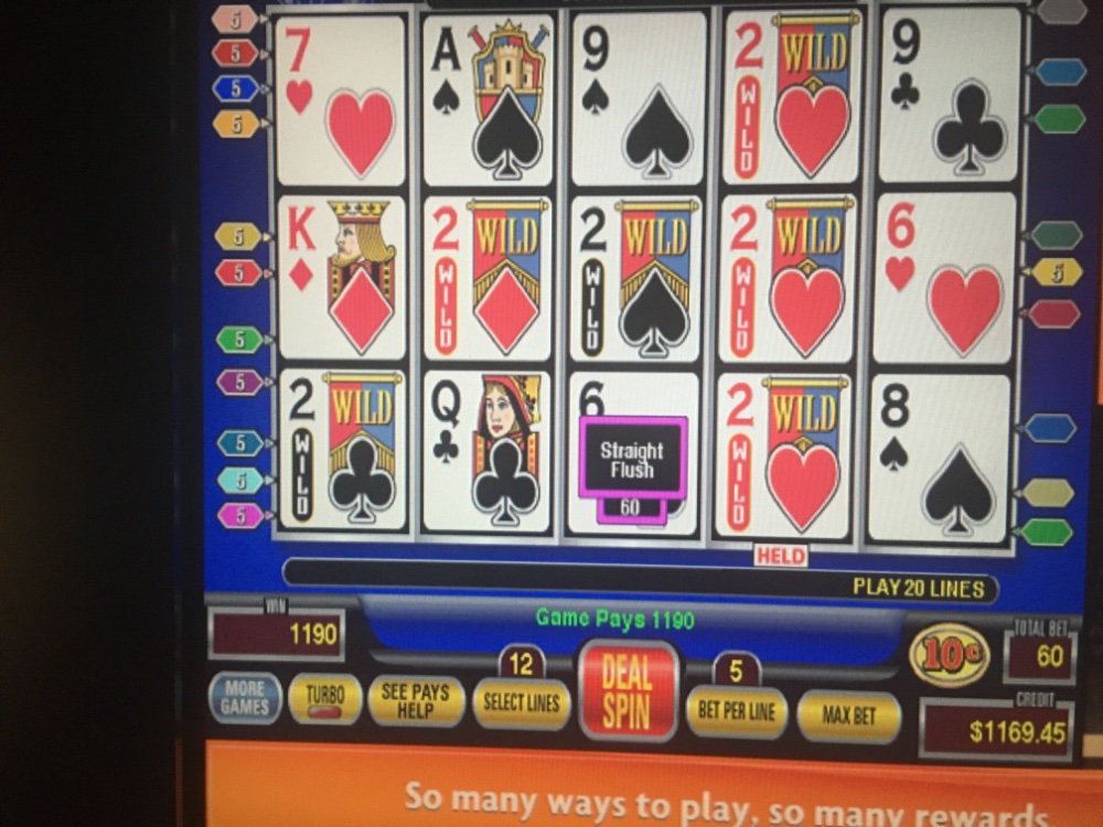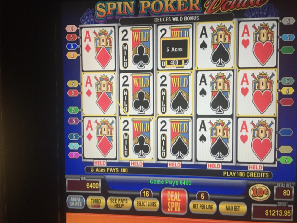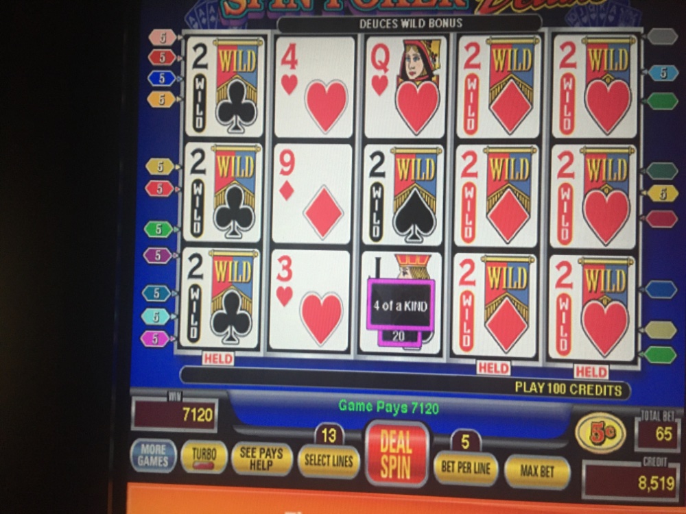 I believe this is the only low denomination machine at Mohegan sun. All star two has regular deuces wild but I don’t believe it has bonus juices. I haven’t searched thoroughly though. There is one machine that I also like to play that’s in the 97% range but it requires a big bankroll. It is also a spin poker option game but it only goes up to nine lines. On the other hand it pays 800 for the royal for about 1/4 which is a big plus. And pets are allowed up to 15 for a line. This bonusDeuces wild on spin poker deluxe is usually very busy that’s why I play it overnight into the wee hours of the morning