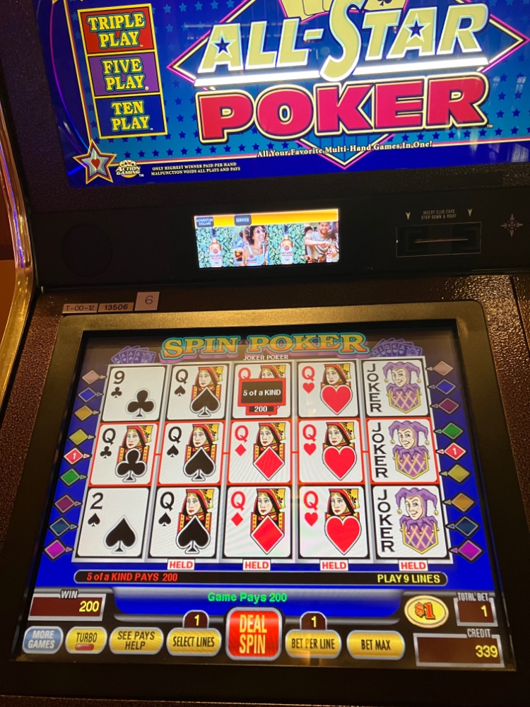Back earlier this evening from Bizarro. Early hit had my hopes up when I first got there. Stayed with the same machine and upped the bet. 3 lines at 5 bucks a line. Two hours later…..-1400.