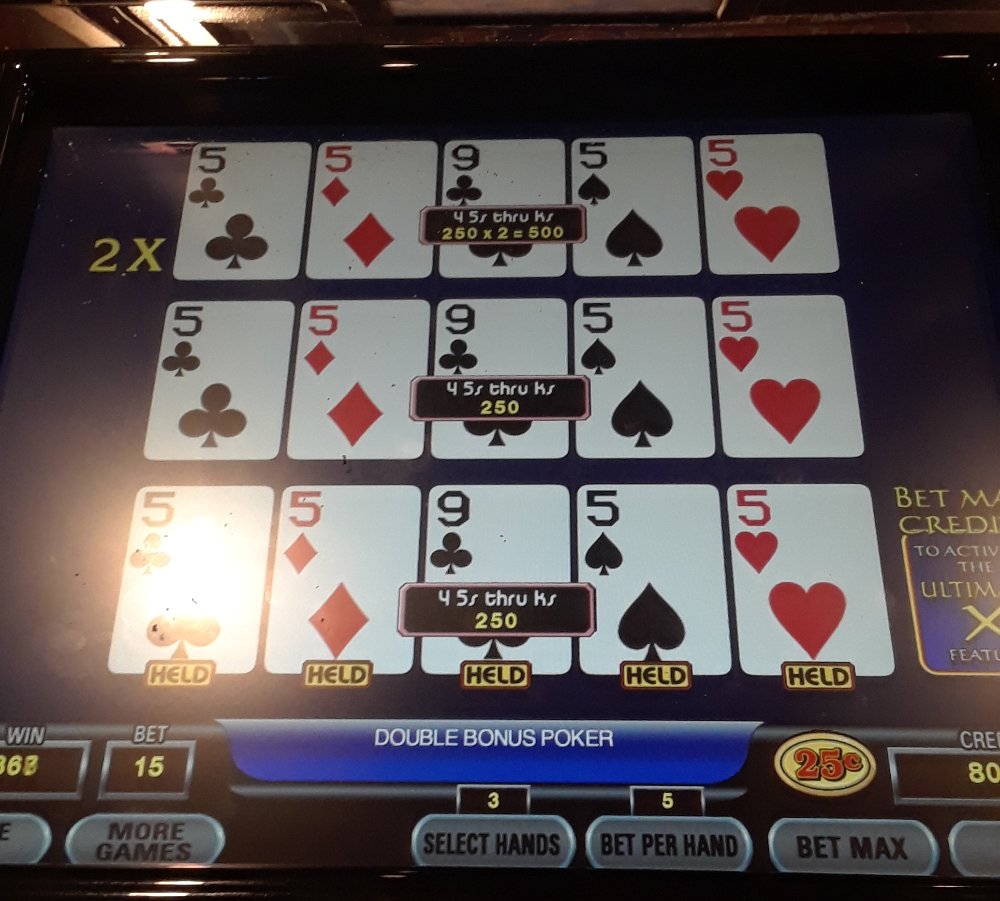 Unfortunately, it looks like hopping can produce bad results in the opposite direction as well. Last night I played those same machines no more than 5 minutes each or about 50 hands. So that would be about 2 /2 hours and 1,500 hands. That is a small sample, but of the 30 machines, not one hit a quad or straight flush playing all that time. Very unusual, but not as rare as the first experience.