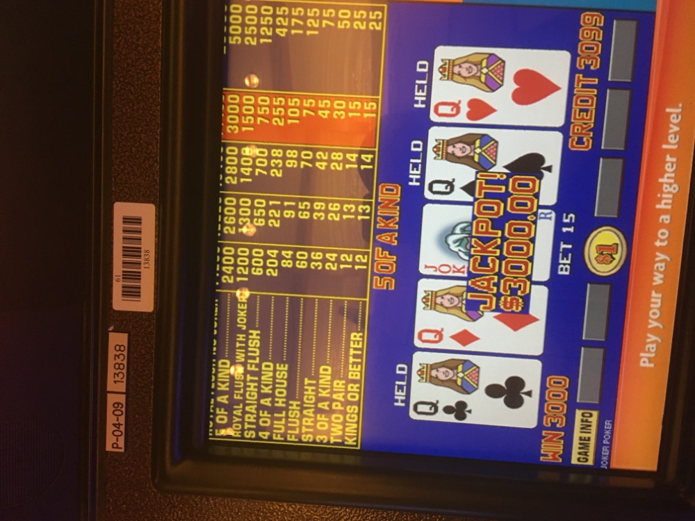If you get to bet 25 quarters and lose twice, I change to halves and start at bet 13. If its in a horrible cycle and you get to bet 25 halves, I switch to dollars and start betting 13 dollars a hand. If it takes you all the way up to bet 25 dollars, you may be busted or very low on credits. So far, I haven’t had to go up that far. Warning. Not for the faint of heart. Assume you are going to lose it all before you play. Please do not bet with money you cannot afford to lose. Practice first. You may not like it at all. It is a nice feeling to hit a quad though and be able to cash out or drop your bet from say 22 quarters to 10 or back to 5 if you are up for the session.