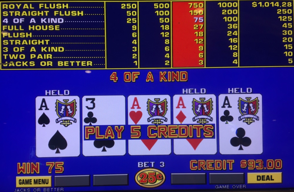 Bummer, but a DDB player’s dream. Aces with a kicker. I was dealt one of those last night on Joker UGH! 17for one payout. Sounds like you were in the midst of losers and or wackos on the quarter games. Double UGH !