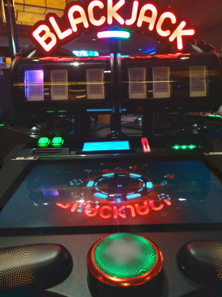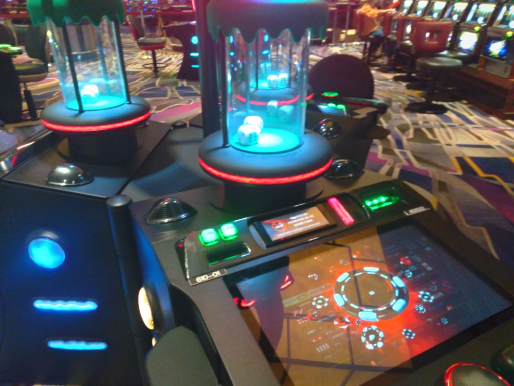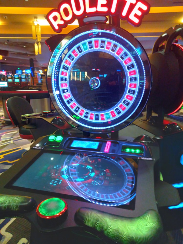 I don't play them. They're right in front of the sportsbook which is in front of the casino next to the hotel area. The pit games are further back by the cashier. There is also a "Party Pit" by these machines, but it's rarely open. Most likely they put these in for those that don't want to run back and forth.