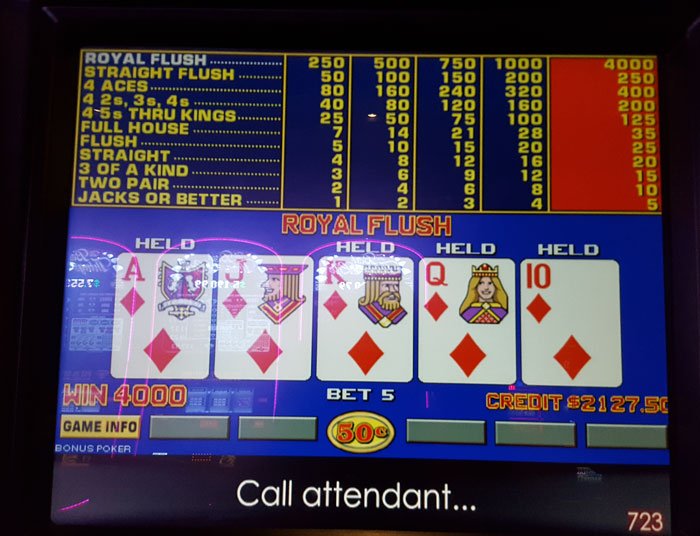 I normally hit one or two hand pays each year. This happens when I have a good day and move up in denomination. Here's one I hit back in January.