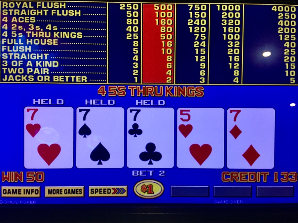 I maintain that I need a quad per hour to break even. Yesterday was twice that rate. I blew three max quad hits again. But I hit the crucial final premium quad.