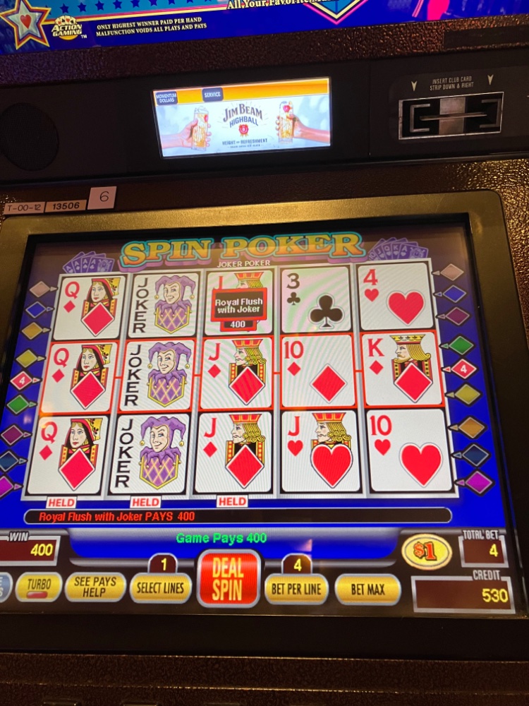 Got em for a nice little Royal and the correct payout. 98.44 Joker Kings. The Mrs did really well too. Her pics probably later or tomorrow. Thanks again for the well wishes. Eliminated 2 of 3 busts now. One more to go. Maybe next trip.