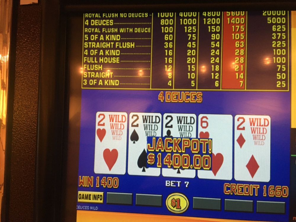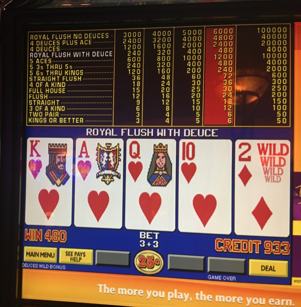 Our trip to Bizarro had a spooky end. (from our front steps. The video wouldn’t load. I attached a still shot. Just missed a dealt Royal on Double Down Stud Bonus Deuces Wild. Settled for the Wild Royal. No jackpots this trip